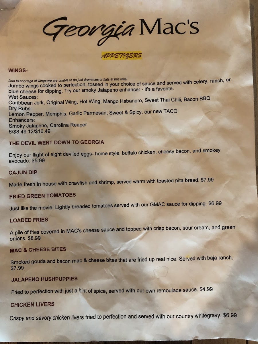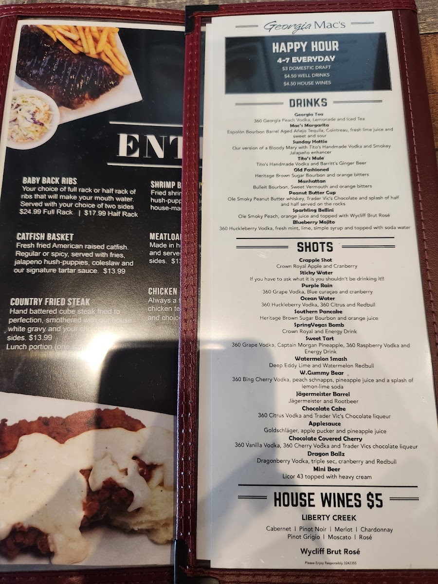 Welcome to Georgia Macs, a vibrant eatery located at 1440 E Republic Rd, Springfield, MO. This restaurant is a feast for the senses, offering a delightful array of sliders, hearty entrees, and tempting shots. The menu features mouthwatering options like Baby Back Ribs and Country Fried Steak, each crafted with quality ingredients and a homestyle touch.
